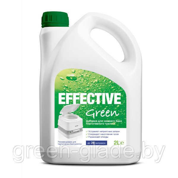 Добавка для нижнего бака портативного туалета Thetford Effective Green устраняет неприятные запахи, сохраняет накопительный бак для отходов свежим, уменьшает образование газов и обеспечивает быстрый распад туалетных отходов и туалетной бумаги.